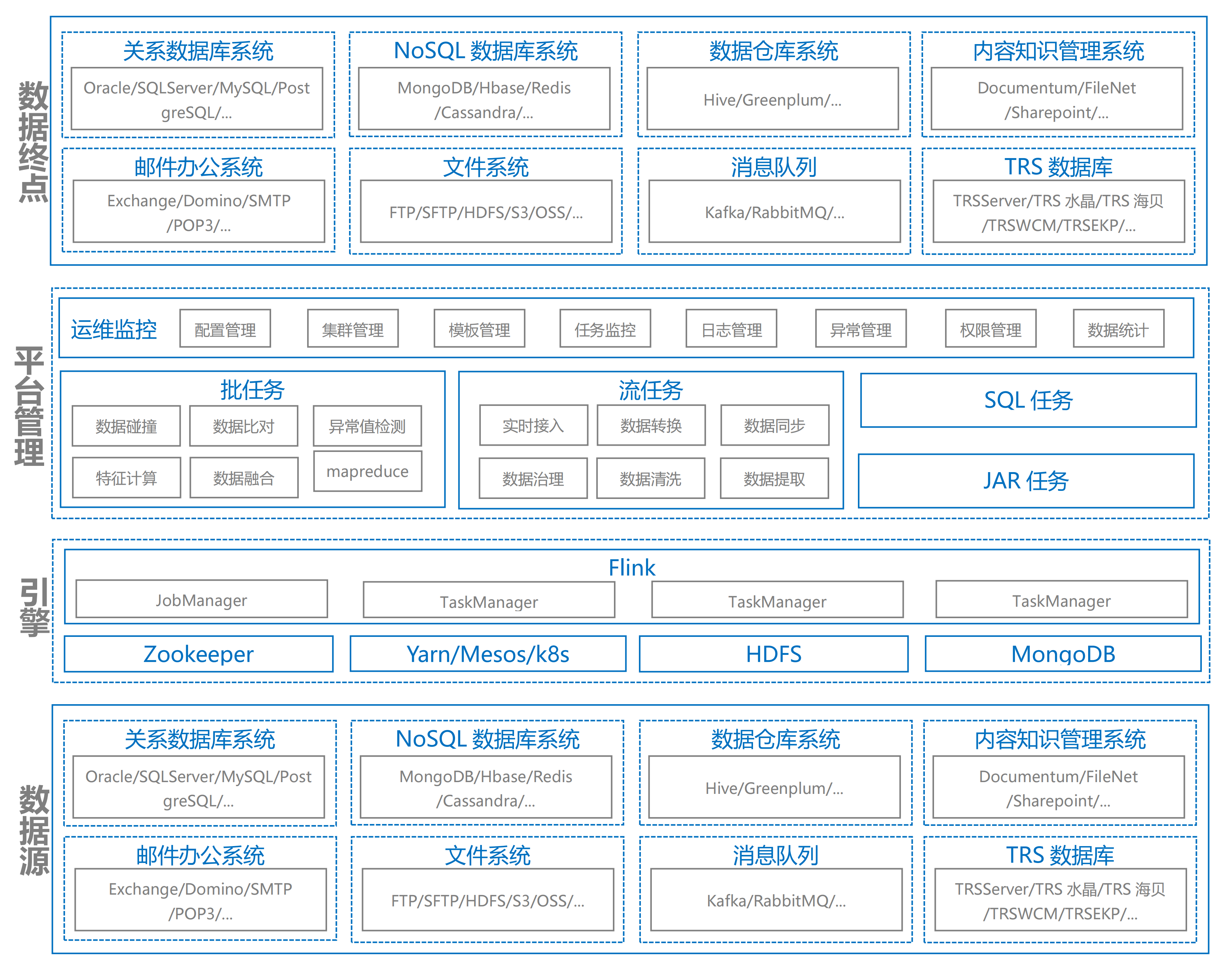 实现多源异构数据整合,加强数据管控能力,消除信息孤岛,更好的为上层应用给予服务。